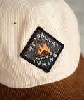 - 2" x 2" vintage-inspired felt patch with embroidered detail and merrowed border