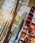 The tranquil feeling of sunset through the forest; inspired by artist Becca's favourite Algonquin camping spot.