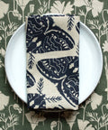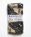 All-Linen Tea Towel with Cool Black Moths on Natural
