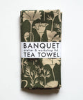 All-Linen Tea Towel with Khaki California Poppies on Natural
