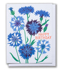 The best kind of blue and the cheeriest of flowers are paired here with a neon red/orange Happy Birthday Greeting.
