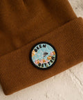 - 2" x 2" vintage-inspired felt patch with embroidered detail and merrowed border