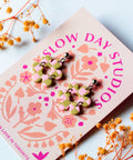 Checkerboard Split Flower Dangle Pink and Tan