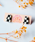 - Lightweight & durable polymer clay checkerboard studs