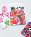 There's something magical about a little house tucked in the woods and this beauty takes the notion to the extreme. Vibrant gardens of green, blues, and neon red rear up around a tidy little house, with "Congrats on your New Home" in Banquet Workshop's hand drawn typeface inspired by vintage French signage.