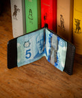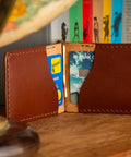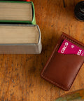 Named after Dunvegan, Cape Breton, the Dunvegan is a beautiful & functional leather wallet for those looking for a slim wallet that'll still carry cash. It features a solid-brass spring money clip to keep your bills and receipts secure and readily available. It will carry 5-6 cards at first and with a bit of time can hold up to 12 cards. Even with it's high carry capacity this slim wallet is still front-pocket friendly, making it one of Phee's top-sellers.