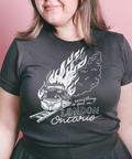 - White ink on black tee