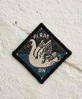- 2" x 2" vintage-inspired felt patch with embroidered detail and merrowed border
