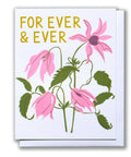 For Ever & Ever wedding and anniversary card, with blousy pink clematis blooms and green golden type.