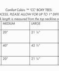 - This boxy style is marketed as "women's", but the width of each size is roughly the same as Comfort Colors' unisex tees; for that really boxy look we would recommend sizing up from your usual