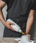 Notes: In place of the cork, all spouts now feature the black silicone bottoms, as pictured in the St-Armond Blanc colourway. Additionally, the nozzles are pictured here with a silver counterweight; the new spouts (which are on all of our current inventory) are all fully the gold/bronze colour, including the circular counterweights.
