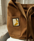 - 2" x 2.5" vintage-inspired felt patch with embroidered detail and merrowed border
