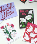 A card for a friend or parent, with Grateful for You in neon pink on a rich red with a symphony of swans.
