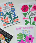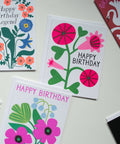 Neon orange with cobalt blue and modern, simplified flowers make this a very special birthday card, especially with the greeting: Happy Birthday Legend.