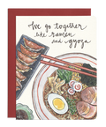 What is a better match than ramen and gyoza? Give this card to that special foodie in your life, the one that you're willing to share your potstickers with. Gotamago suggests presenting this card over a good meal of ramen, gyoza, chicken karaage, and Kirin beer.