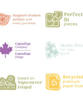 Designed in Canada by Anja Jane and Villager Puzzles.