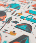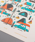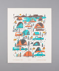 Visit any popular campground in Canada over the summer, and you will find a festival of colours and shapes, a patchwork pattern of tents, trailers and gear. Designed by BC-based illustrator Tom Froese.