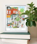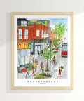 This is a print of an original gouache painting of Toronto's Roncy / Roncesvalles Avenue.
