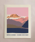 Explore the mountains of British Columbia with this unique travel poster. Perfect for adventurers, nature lovers, and intrepid explorers, this artwork is sure to make any wall pop. Let your walls chart the course to a great adventure! Inspired by mid-century vintage travel poster advertisements - this poster is an original illustration screen printed by hand by the artist.