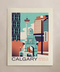 An original illustration of one of the Centre Street Bridge Lions located in downtown Calgary. Inspired by mid-century travel posters advertisements.