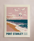 Dive into the charm of Port Stanley with this vibrant travel poster celebrating one of Ontario's most beloved beach destinations. Featuring the iconic blue flag-certified shores, rolling waves, and sun-soaked sandy beaches, this print captures the essence of seaside fun and family memories. Whether you're a local who cherishes the destination or a traveler dreaming of your next escape, this poster is your window to endless summer vibes. Proudly presented in collaboration with Spruce Moose