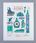 The City Series is an extension of the popular Canadianist line of art prints. In this series, we honour both the obvious and the obscure about our great Canadian cities. Made from a local’s perspective, this illustrated print celebrates those things you almost forgot you’ve always appreciated about Ottawa.